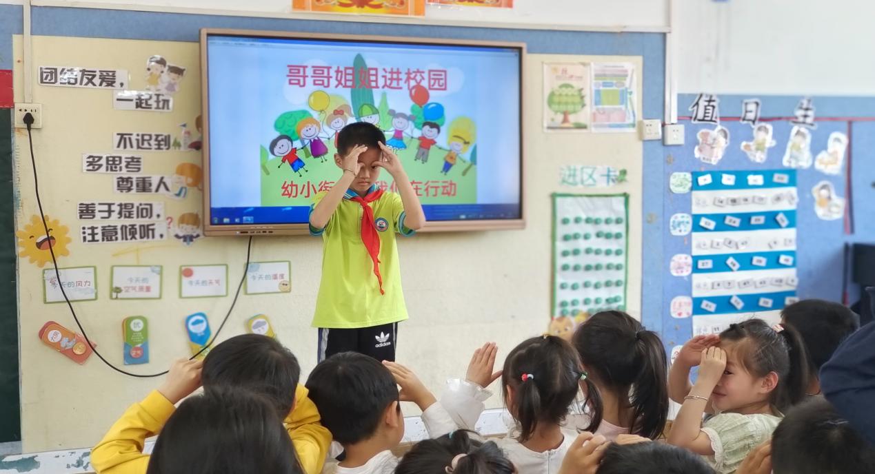 对于即将进入小学学习的大班孩子,他们既对小学充满新鲜好奇的期待,又有着一些担心和焦虑。在进行《离园倒计时》主题教学设计幼儿讨论环节时,孩子们提出了许多对小学生活的疑问,如:小学那么大,到时候找不到班级教室或厕所怎么办?我的好朋友以后不在一个班了怎么办?……而孩子与孩子的交流是最直接和有效的,所以道县教育局示范园邀请了小学一、二年级的学生到各班为孩子们答疑解惑。在哥哥姐姐畅述亲身体验的轻松交谈中,孩子们的疑虑得到了极大缓解。