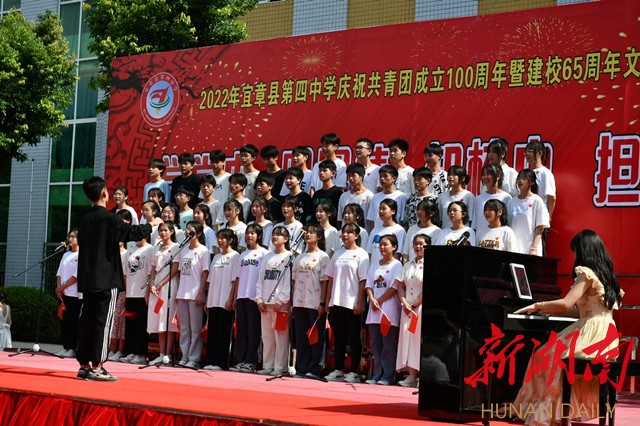 科教新报·新湖南客户端讯(通讯员 李颖)为庆祝中国共青团成立100周年及宜章县第四中学65周年华诞,6月28日,宜章四中举行“学党史,明团情、知校史,担使命”文艺汇演,热情讴歌中国共青团的百年光辉历程和丰功伟绩,以特有的方式隆重庆祝母校65岁生日,深情表达对四中的热爱和祝福。