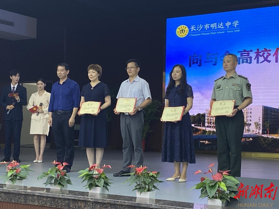 在本次研讨活动中,5所高校负责人向“国防开办班”今后的教育教学方式给予指导意见,并分别向明达中学高中学生进行高校招生宣讲,介绍本校的特色专业和就业方向。明达中学向他们颁发了“国防科工班教育教学顾问”证书。