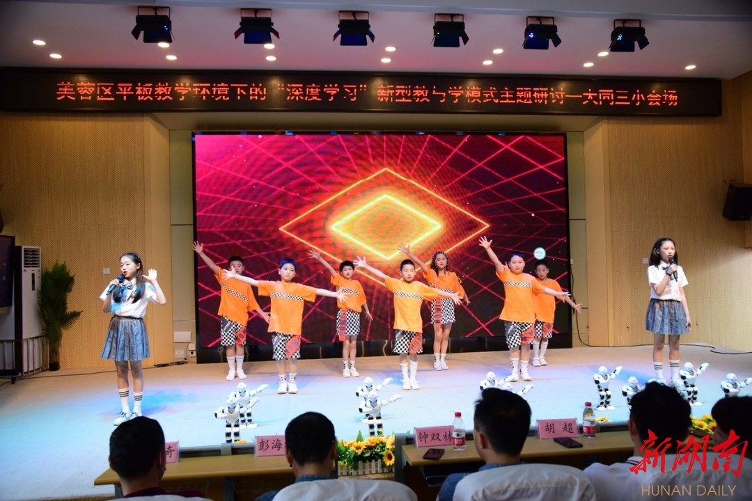 在第二阶段的课例研讨中,学校以融合信息技术的高效课堂为重点,芙蓉区卓越教师、大同三小数学李品老师和美术王清香老师分别展示了平板教学环境下的“深度学习”课例《圆柱体积的再认识》和《本草的故事》。他们运用精彩微课资源和平板教学,通过深度互动的设计,让孩子们学习更高效、更有兴趣。同时教学手段和方法焕然一新,给大家很多的思考和启示。