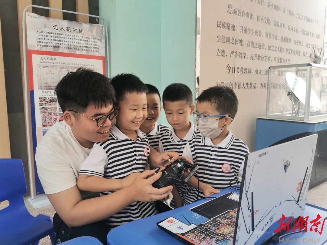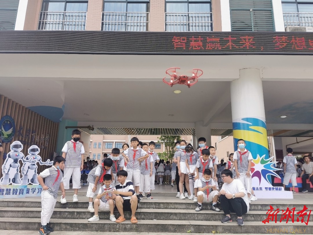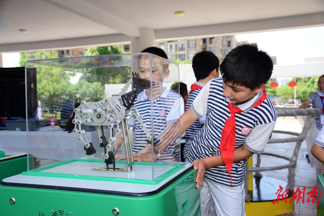 在第二板块的科技助力校园减负提质参观巡展活动中,湖南省振兴科普教育服务中心组织爱心企业为本次活动提供了全新人工智能、信息化教学融合科普体验支持,孩子们喜爱的“科普大篷车”也随之开进校园。活动由人工智能区、无人机驾驶区、创客编程、虚拟机器人教学体验、以及展品体验、互动实验区等十几个块组成,开展了十多项科普互动体验,极大地调动了学生对科学探索的参与积极性。