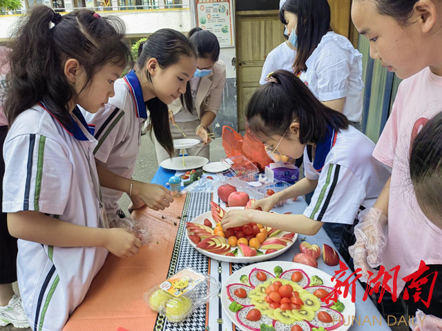 三四年级开展水果拼盘大赛。孩子们以各色水果为原料,一番剪、切、拼后,摆出了一幅幅生动的作品;各班还以“清廉促成长”进行了主题教育活动。