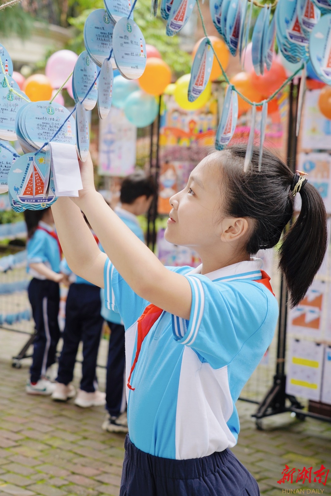 现场活动在轮船启航的汽笛声中拉开帷幕。李晖校长在现场寄语,希望全体学生能够做自己的心灵舵手,自主导航,健康成长。随后,岳麓区第一小学的学生为大家带来了精彩的表演。情景剧朗诵《爸妈的谎言》引导家庭重视心理健康教育,解决家长与孩子的沟通问题,塑造和谐、温暖的家庭氛围。舞蹈《摇橹声声》展现与同伴良好人际交往,团结互助、乐观向上的风貌。活动中,芭乐园心理老师吴胜芳在现场带领嘉宾与孩子们互动,围绕十二项积极心理品质开展对对碰游戏。现场活动在一二年级小朋友带来的舞蹈《阳光成长》中圆满结束。