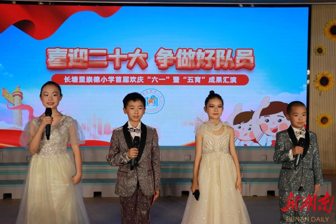 新湖南客户端6月1日讯(通讯员 顾蕾 刘城)为庆贺“六一”国际儿童节,5月31日下午,雨花区长塘里崇德小学举行了以“喜迎二十大,争做好队员”为主题的首届欢庆“六一”暨“五育”成果汇演。