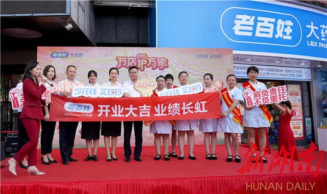 湖南日报·新湖南客户端6月26日讯(记者 王文 李治 通讯员 易力群)今日上午,老百姓大药房第1万家门店——湖南桃江太平路店正式开业,老百姓大药房成为中国首家门店数破万的民营上市连锁药房,率先迈入“万店时代”。