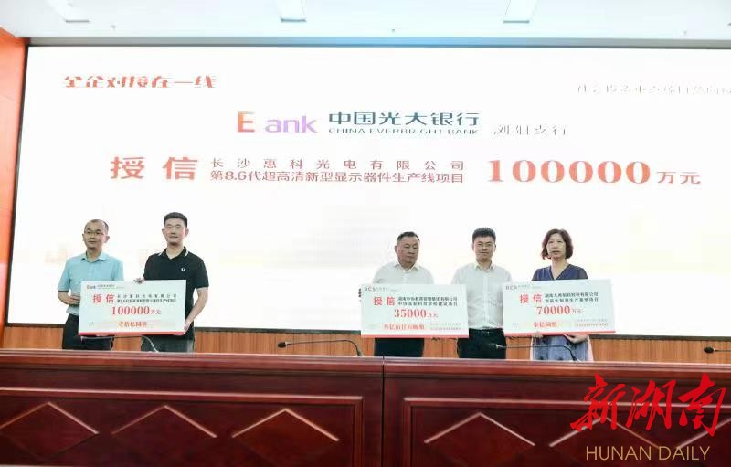 湖南日报·新湖南客户端6月22日讯(通讯员 袁安 贝丹)长沙惠科第8.6代超高清新型显示器件生产线项目获授信10亿元,浏阳泰科天润半导体技术有限公司的泰科天润半导体芯片项目获授信10亿元……