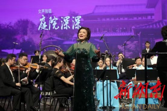 当然,音乐会上也不只有这样深刻厚重的题材唱段。《挤女巷》唱出了江永青年男女情窦初开的小欢喜,俏皮可爱的表演唱带着山歌的感觉,如同山间的清风吹进巷子口;《潇湘美食》趣味性强,用最接地气、最直白的唱词将观众带到了坡子街,长沙市井的那口幸福欢乐的“锅气”被带到音乐厅里来;最后一曲戏歌《我家住在花中央》余音绕梁,令观众回味无穷,朗朗上口的曲调让人禁不住跟着哼唱。