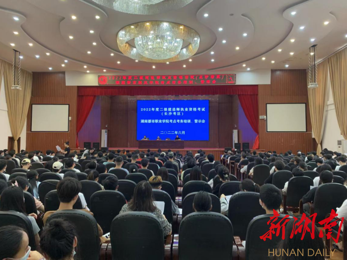 湖南日报·新湖南客户端6月14日讯(通讯员 姜潇)6月11日、12日,2022年度二级建造师执业资格考试(长沙考区)如期开考。此次考试长沙市共设21个考点,湖南都市职业学院作为考点之一,设置了294个标准考场、6个备用考场,安排考务工作人员、疫情防控人员及监考人员812人,来自全省各地的8820名考生参加考试,成为全省最大的考点。