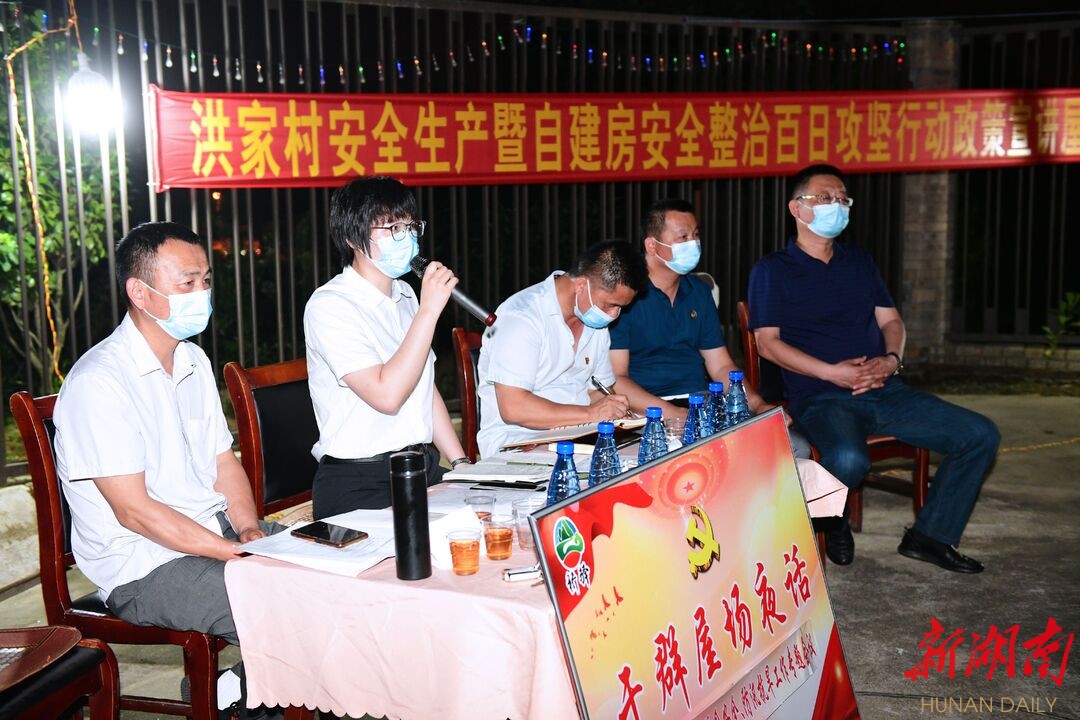 湖南日报•新湖南客户端6月10日讯(记者 谢璐 摄影 范远志 通讯员 周恬)“乡亲们,防范胜于救灾,责任重于泰山,请大家认真履行自建房房主和业主的安全主体责任,全面排查安全隐患,共同守护平安家园……”6月9日晚,在长沙市望城区桥驿镇洪家村徐家老屋组的一户村民家前坪,四个村组的党员群众代表围坐在一起,以一种接地气的方式共话房屋安全、生产安全、用电用气安全、防溺水安全等工作。