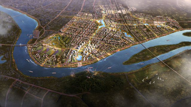湘潭新中心鸟瞰图(夜晚临江视角)