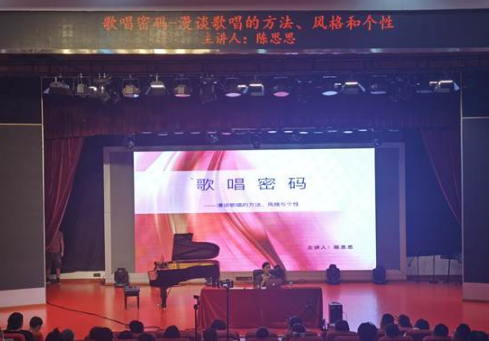 该校音乐学院负责人代表学校致欢迎辞并介绍陈思思的履历,在全院师生热烈的掌声中,陈思思以《歌唱密码——漫谈歌唱的方法、风格和个性》为题开启讲座。她从树立正确的歌唱理念、深入了解歌唱的基本形式、准确把握歌曲的体裁、充分理解歌曲的情感内容、准确把握歌曲的艺术风格等五个方面对声乐学习和歌曲演唱的要领作了全面而深刻的解析和讲解。在近两个小时讲座的过程中,陈思思与同学们适时精彩互动,现场气氛活跃、融洽,台下师生频频致以掌声。