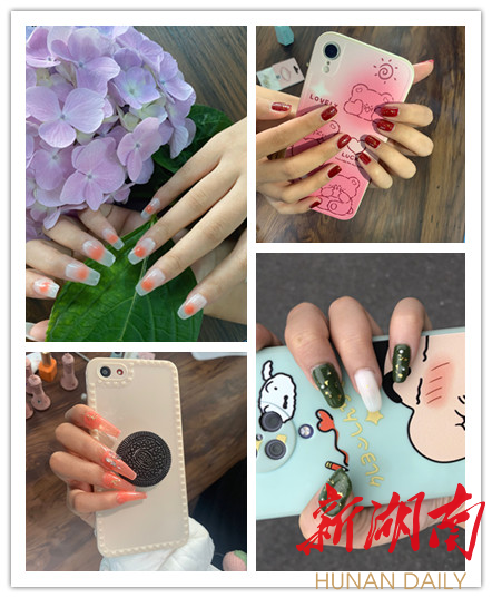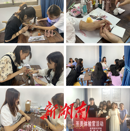 以上场景,是近日湖南环境生物职院医学美容协会开展的“至美体验官”活动,活动邀请了2019级、2020级学生参加,请他们给2021级学妹们设计出一款款时尚、新颖的美甲。“修磨指甲、定型、配色以及上色,每款美甲背后竟然有这么多工序。”2021级医美专业学生张波作为现场唯一的一位男生笑着说,“我多多少少也学了一些,没什么不好意思的,技多不压身”。