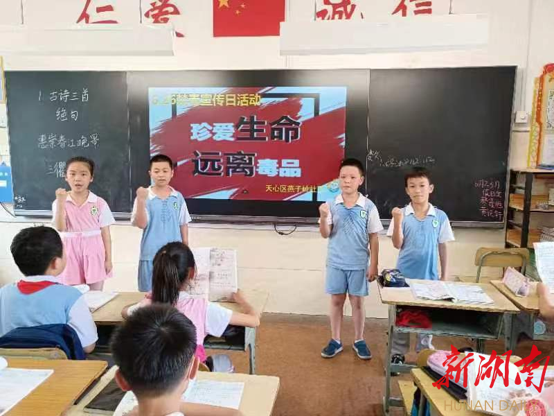 新湖南客户端6月24日讯(通讯员 肖敏)为进一步加强学校禁毒预防教育,普及毒品防范知识,提高学生识毒、防毒、拒毒意识,6月24日,长沙市天心区城南路街道燕子岭社区、天心区城南路街道燕子岭社区关工委联合天心区幼幼小学开展“珍爱生命远离毒品”国际禁毒日宣传主题班会活动。