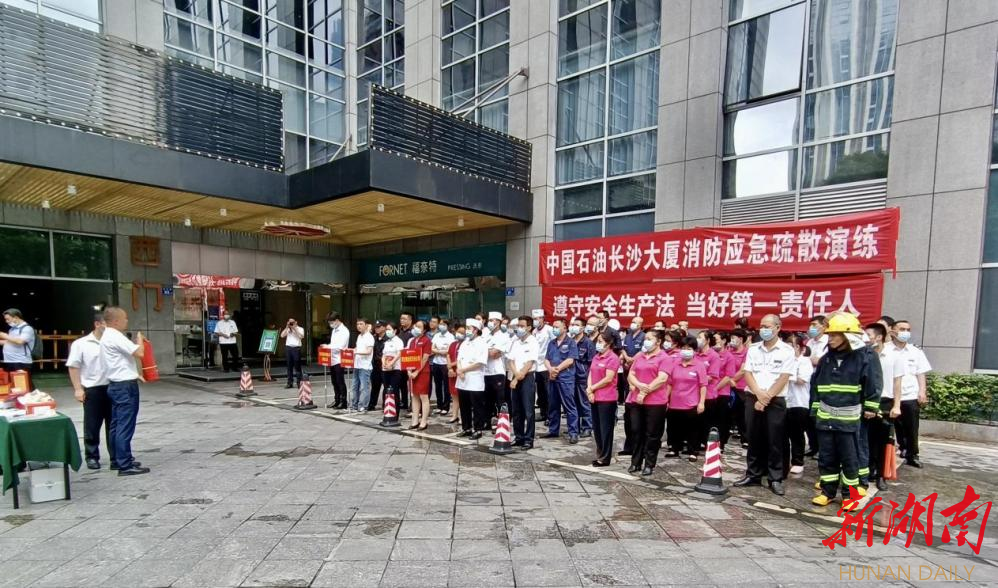 新湖南客户端6月17日讯(通讯员 黎庆芳 彭琰)为增强员工安全意识,提高应急避险逃生能力,6月17日下午,长沙市芙蓉区定王台街道金沙里社区联合中国石油长沙大厦楼宇工会联合会、华油集团华中分公司长沙大厦项目部开展消防安全应急避险演练活动。