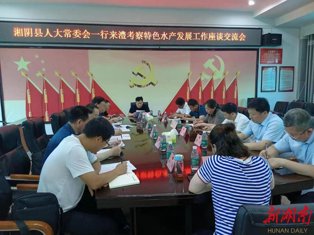 在随后召开的座谈会上,县畜牧水产事务中心汇报了澧县特色水产发展工作情况,湘阴县考察组就如何发展特色水产和澧县相关部门负责人、大户代表进行了深入交流。