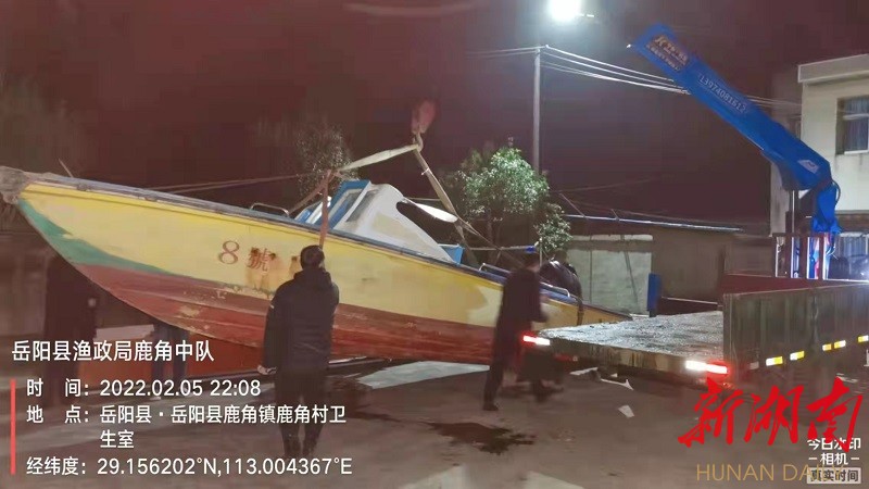 实行退捕禁捕后,仍有部分人违规使用“三无”船舶进行非法捕捞、载客垂钓。《湖南省人民代表大会常务委员会关于促进和保障长江流域禁捕工作的决定》自2022年1月1日施行后,岳阳县以此为契机组建工作专班,组织各成员单位执法力量,在东洞庭湖鹿角水域开展联合执法行动,率先对“三无”船舶进行前置管理,督促其离开禁捕水域吊离上岸。