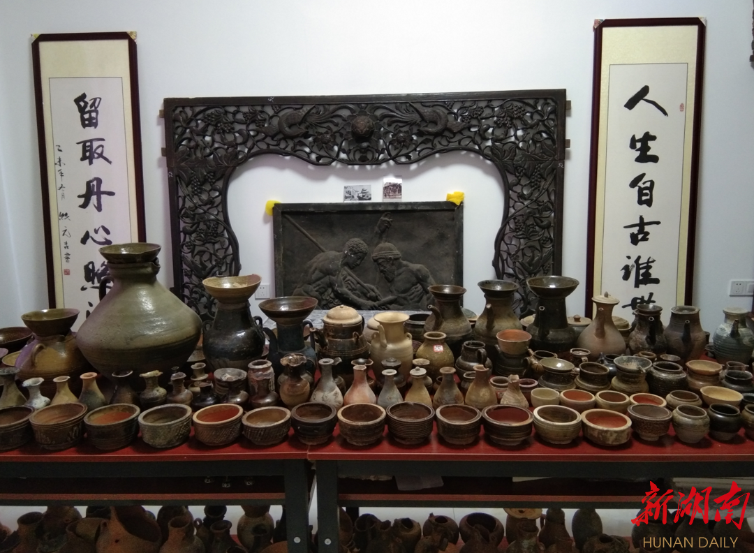 “附近居民文保意识缺乏,还有外地文物贩子到窑址盗挖,给窑址带来很大的破坏,导致很多具有史料研究价值的陶器流散各地。”张曼军不忍鹿角窑陶瓷就此销声匿迹,多年来有意从乡亲们手中收集陶器,并多次到藏家手中收藏。收藏之路坎坷,要耗费大量时间精力和金钱。张曼军靠自己日夜写书法补贴收藏,加上亲友的支持,让他坚持了下来。
