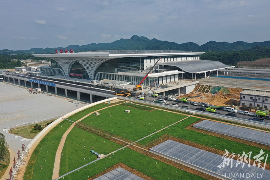 6月22日,常益长铁路益阳南站广场音乐喷泉建设完工。目前,益阳南站装饰装修、站前广场绿化等配套设施全面完工。 湖南日报全媒体记者 郭立亮 摄