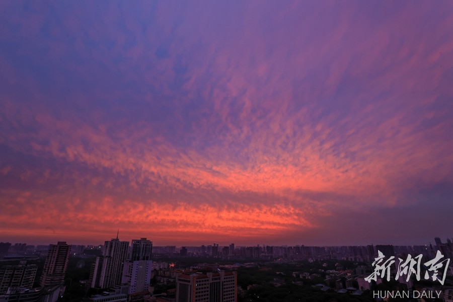 6月16日清晨,长沙朝霞似火。湖南日报全媒体记者 张京明 摄