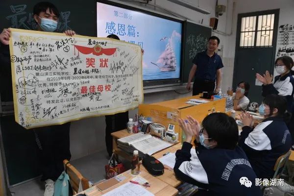 6月2日,距高考仅5天时间,长沙市麓山滨江实验学校高三G1911班教室里,学生在上高中“最后一课”。湖南日报全媒体记者 徐行 摄