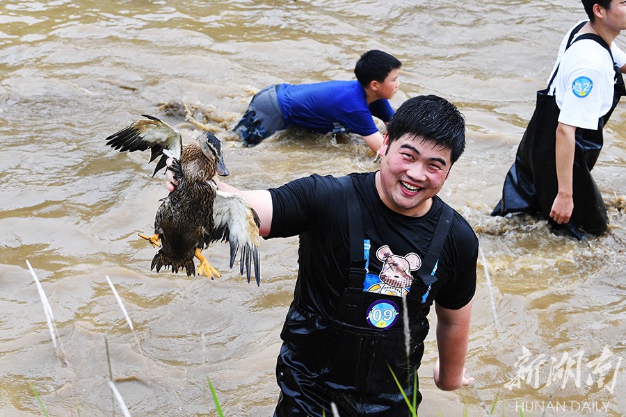 6月3日,端午佳节,长沙世界之窗举办抓鸭子活动,众多游客参与,欢度假日。湖南日报全媒体记者 徐行 通讯员 邓婷 摄影报道