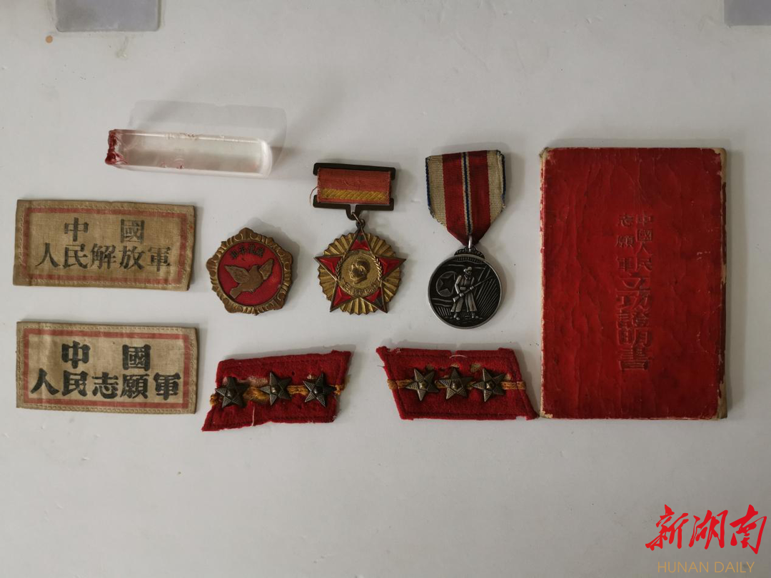 在李绍光的家里,他缓缓打开了一口楠木箱,向我们展示了珍藏多年的宝贝:一件从抗美援朝战场上带回来的棉大衣,一对中国人民志愿军胸章,一枚中国人民政治协商会议全国委员会抗美援朝纪念章,一枚金日成颁发的抗美援朝纪念章,以及其他纪念品和照片。