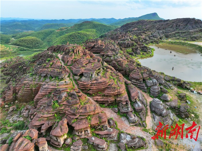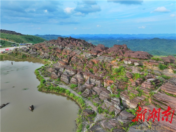 湖南日报·新湖南客户端6月27日讯(特约记者 吴东林 通讯员 向国韩 石丹丹 )初夏时节,走进位于武陵片区腹地西侧的贵州省铜仁市松桃县盘山镇与湘西土家族苗族自治州凤凰县两林乡交界处,一片“宝塔型“红石林巍然耸立在腊尔山海拔1200米的山巅。