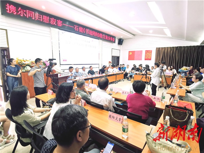 湖南日报·新湖南客户端6月26日讯(记者 向莉君)“转眼之间,我就长到了中年,岁月的沧桑、人事的无常、命运的跌宕,冲刷着我们曾经意气风发的青春面庞……”6月26日上午9时50分,朗朗书声从位于湘西土家族苗族自治州群众艺术馆4楼的一间会议室里传出。当天,湖南省作协会员、湘西州《团结报》副刊部主任编辑、湘西女作家石健的散文集《书途同归》分享会,在这里举行。