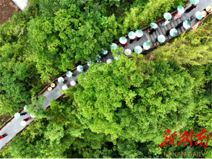 当文化志愿者们穿着旗袍,举着充满江南风情味的雨伞出现在景区各个游道里时,景区的游道一下成了一道别具风情的风景线。