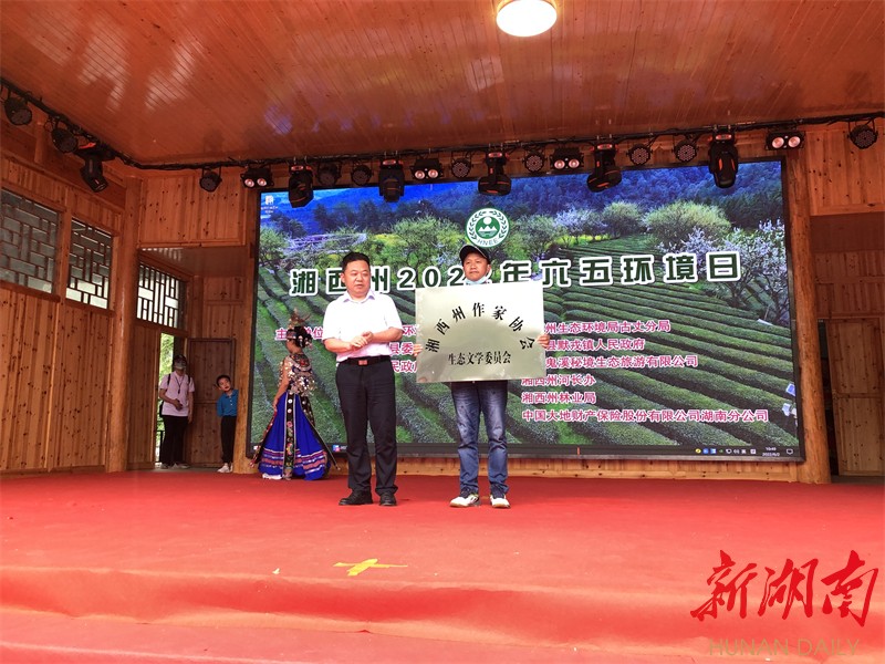 新湖南客户端6月2日讯(记者 向莉君)今天上午,在湘西土家族苗族自治州古丈县默戎镇中寨村举行的2022年湘西州“六·五”环境日主题宣传活动中,湘西州作家协会主席黄挺宣读了成立生态文学委员会的有关通知,州文联主席向午平为委员会授牌,标志着州作家协会与州生态环境局共建的生态文学委员会正式启动。