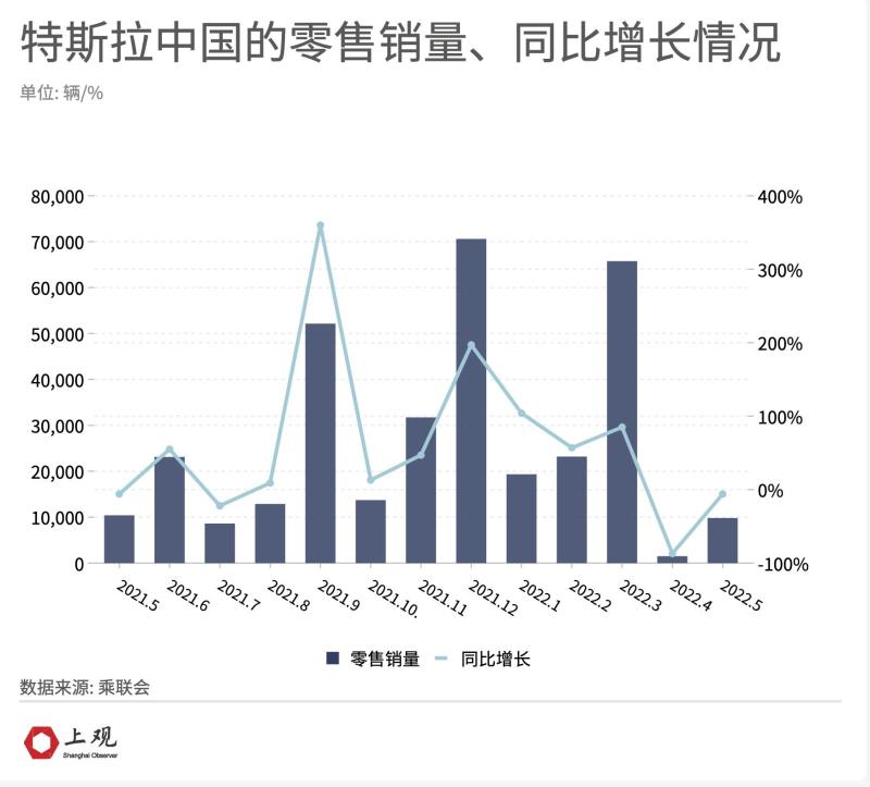 另外,产能下降和疫情影响,也导致特斯拉在中国4、5月份的销量下滑。
