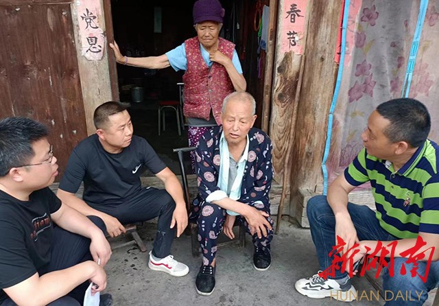 沅陵县九龙山村联合党支部书记、县应急管理局党委书记、局长张美华(右)走访帮扶户。