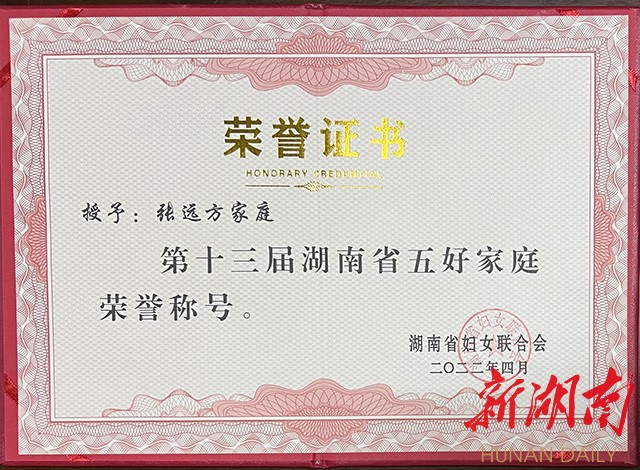 ——怀化市第一人民医院张远方家庭荣获“湖南省五好家庭”荣誉称号