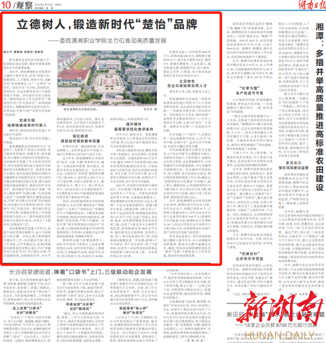 校长李尚益表示,学校将紧紧围绕立德树人根本任务,办人民满意的高职教育,提高专业群内涵建设水平,锻造、形成具有鲜明潇职特色的“楚怡”品牌,不断提高人才培养质量,推动学校高质量发展。