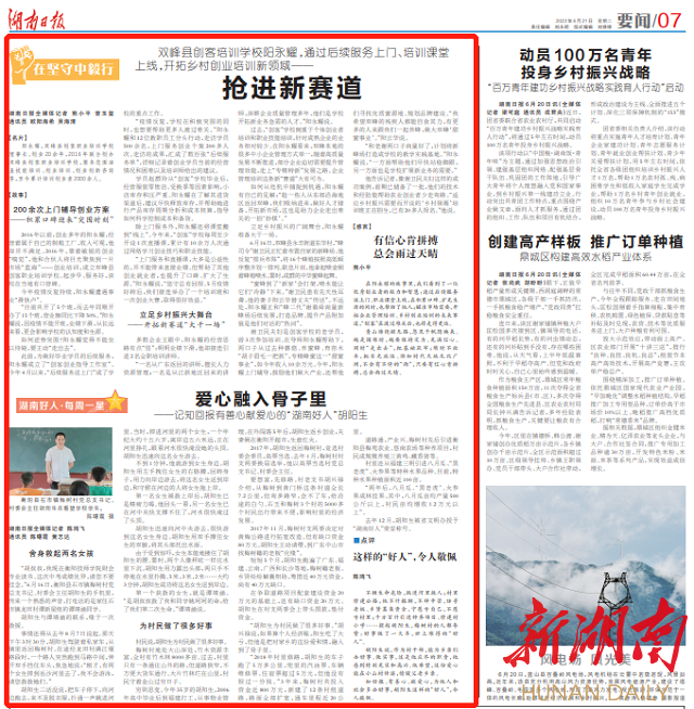 他告诉记者,像谢卫民夫妇这样的成功案例,前期已储备了一批,他们的技术和经验能帮助农业创业者少走弯路。“适应乡村振兴需要而开设的‘乡村领雁’培训班正在招生,已有20多人报名。”他说。