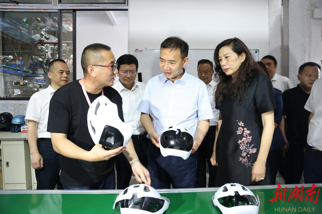 益安高端头盔项目由深圳沃勒尔集团公司投资建设,将东莞益安运动头盔项目落地祁阳高新区,建设年产550万顶高端运动头盔生产线项目,3年后年产值将达20亿元。朱洪武饶有兴趣参观了生产线,详细了解项目生产和销售情况。应公司负责人邀请,朱洪武在祁阳公司生产的第一顶运动头盔上签名留念。住信电气项目2021年10月进驻园区,2022年2月建成投产,建设用时不超过100天,刷新了项目建设的“祁阳速度”。朱洪武要求,要延长产业链,提升价值链,推动产业链向深度和广度延伸,催生“链”式效应。