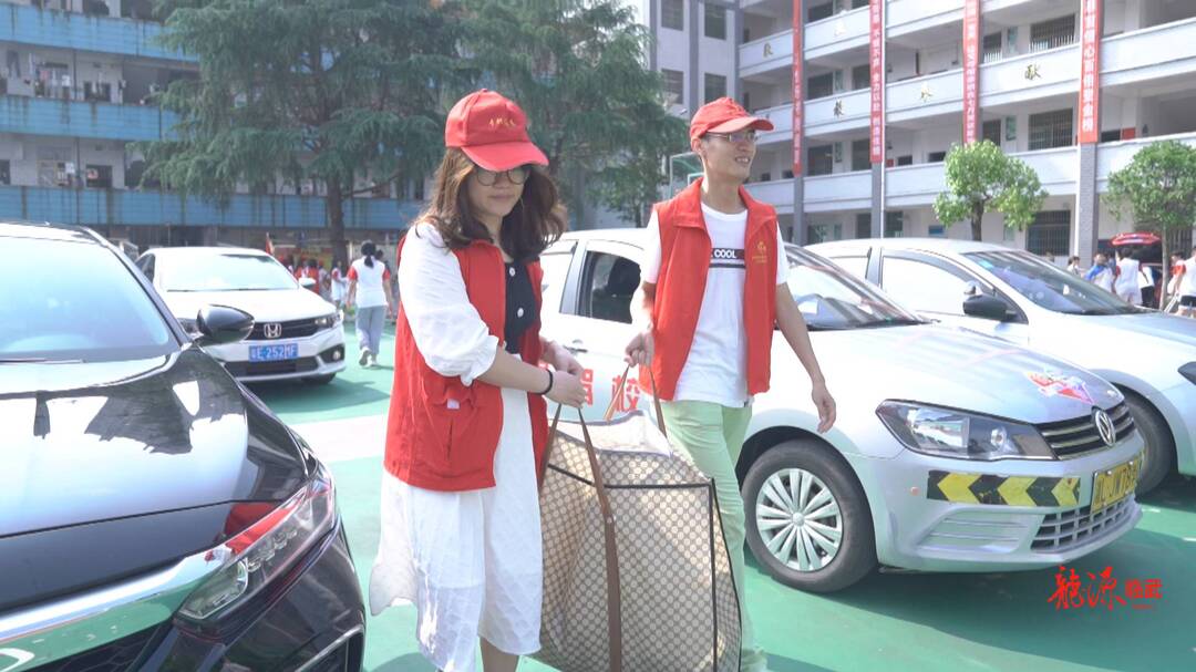 早上8点,在临武二中,30余辆“爱心送考”车整齐划一地停放在田径场上,志愿者们正在为考生搬运行李,贴心的举动让考生们回家的路多了一份温暖。