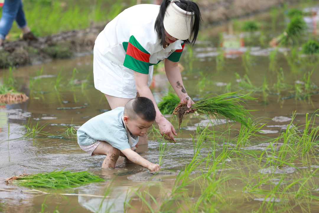 端午佳节,品粽思源。为了让孩子们亲身体验一把“面朝黄土背朝天”的辛勤耕耘,学会珍惜粮食。郴州市嘉禾县晋屏镇宅侯村结合自身农旅特色,推出“粒粒皆辛苦”插秧暨“端午包粽子”亲子劳动实践活动,吸引了不少家庭前往打卡。