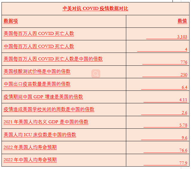 无论是在国内有效控制新的大流行病,还是迅速向世界上最贫穷的国家提供低成本的疫苗,都证明中国的社会主义正在推进人类保护自己免受未来灾难的能力。上百万条生命、相差数百倍的致死率,如此直观而强烈的对比会直接挑战“资本主义制度优越性”的弥天大谎。对于依赖资本主义制度收割全球的美国而言,这是动摇根本的挑战。因此他们发起针对中国抗疫政策的舆论战,掩盖其国内抗疫失败的现实,并寄望欺骗中国人对全球抗疫形势的认知、甚至在中国引发反对政府抗疫政策的“颜色革命”。