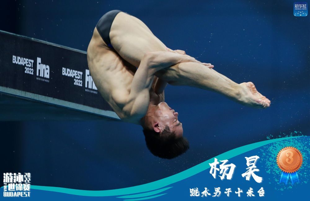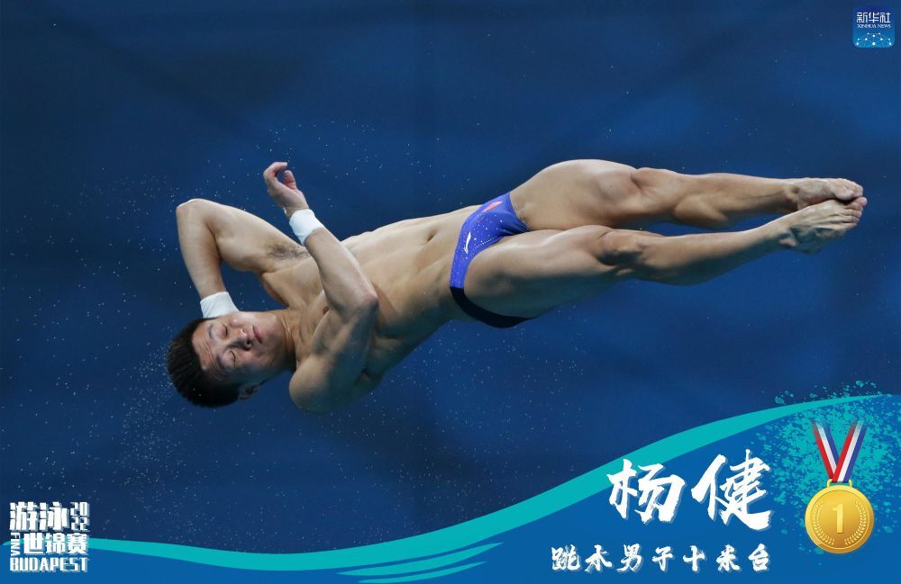 杨健和杨昊在男子十米台比赛中分获金牌和铜牌。杨健作为世锦赛该项目卫冕冠军,在决赛中虽跌宕起伏,但最终依靠标志性的、难度系数4.1的109B征服裁判;杨昊的第三跳和最后两跳不够理想,最终获得铜牌。