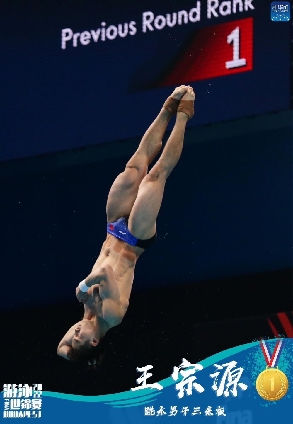 在2019年光州世锦赛上,年仅17岁的王宗源成为男子1米板项目最年轻的世锦赛冠军。在本届世锦赛上,已摘得男子单人、双人3米板两枚金牌的王宗源实现“三冠”,圆满完赛。