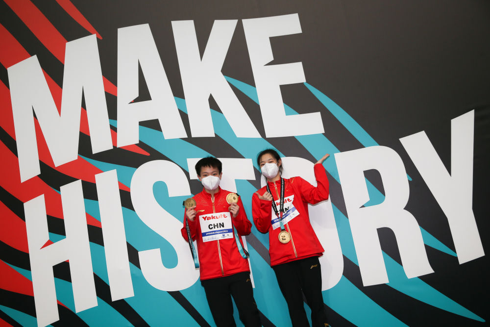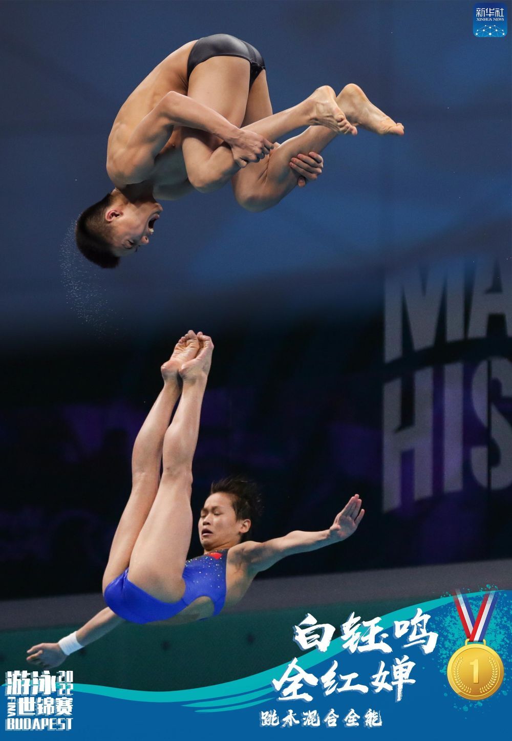 两名15岁小将全红婵和白钰鸣夺得混合全能冠军,这是中国跳水队自1982年参加世锦赛以来的第100枚金牌。