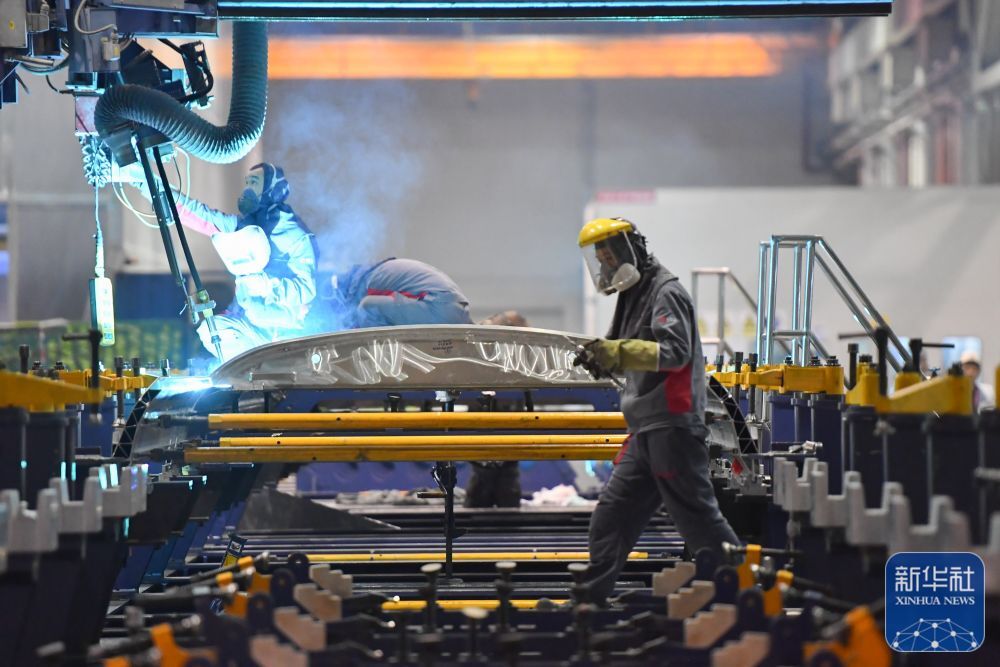 ↑7月5日,在中车株洲电力机车有限公司车体事业部城轨车体车间,工人在生产线上作业。