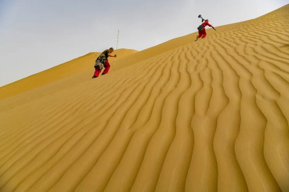 一次,谭陈和3名同事正在野外作业,沙尘暴呼啸而来,“人被风推着走”。谭陈回忆,当时根本看不见周围的同事,更听不到他们的声音,耳边只有风卷着沙子的哗哗声。