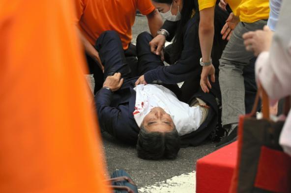 ▲安倍晋三中枪后倒地