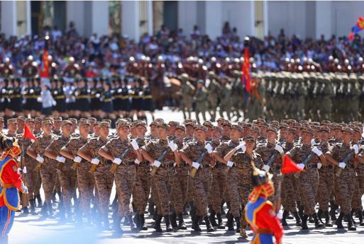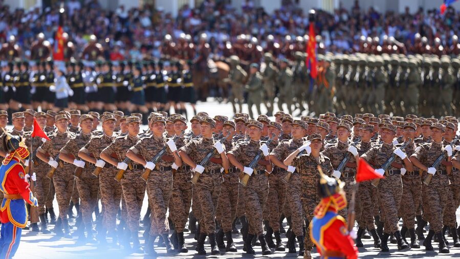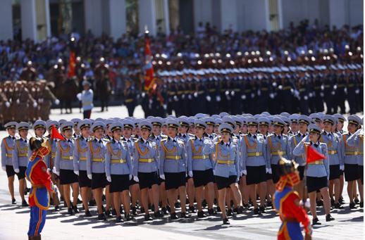 蒙古国10日在首都乌兰巴托市苏赫巴托广场举行阅兵仪式,隆重庆祝国旗日。