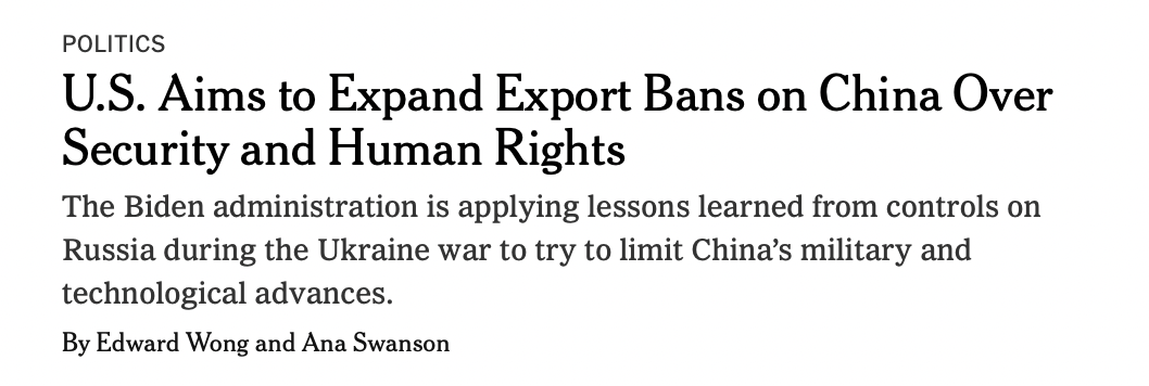 “美国的目标是要确保本国技术优势,不让中国练成在任何冲突中对抗美国或邻国的能力!”《纽约时报》近日发文披露,美国政府正从制裁俄罗斯行动中“吸取教训”,计划扩大对华出口管制,严防中国获得“有助于军事和科学进步的技术”,阻止中国超过美国。