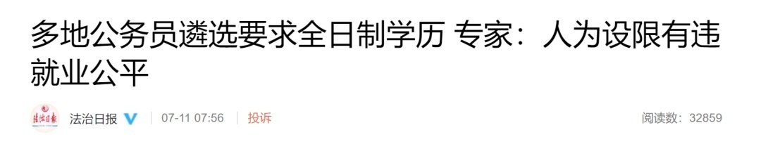 此事引起社会对地方公务员报考学历的关注。