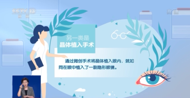 另一类是晶体植入手术,通过微创手术将晶体植入眼内,就如同在眼中植入了一副隐形眼镜。