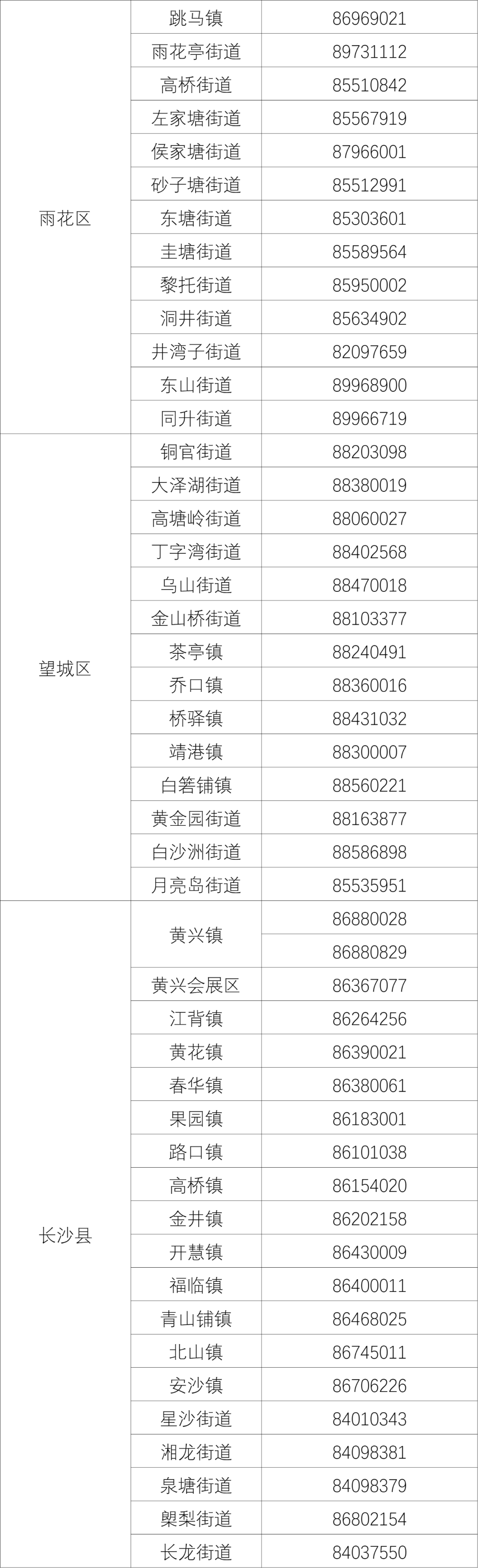 长沙市疾控中心 咨询电话:0731-84792176芙蓉区疾控中心 咨询电话:17700795321天心区疾控中心 咨询电话:18974802057岳麓区疾控中心 咨询电话:0731-88940746开福区疾控中心 咨询电话:0731-84319270雨花区疾控中心 咨询电话:0731-85880843长沙县疾控中心 咨询电话:0731-84015781望城区疾控中心 咨询电话:0731-88075708浏阳市疾控中心 咨询电话:0731-83612510宁乡市疾控中心 咨询电话:0731-81830729